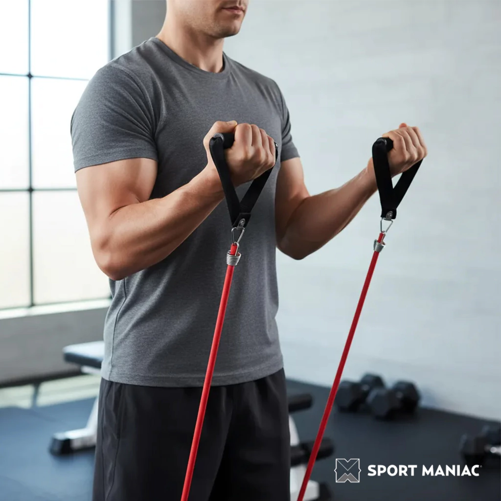 Descubrí la banda elástica reforzada con agarres de Sport Maniac, diseñada para brindarte un entrenamiento cómodo, seguro y efectivo dondequiera que estés. Fabricada con materiales resistentes y duraderos, esta banda ofrece un agarre firme que facilita la ejecución de movimientos controlados, ayudándote a tonificar y fortalecer diferentes grupos musculares.
