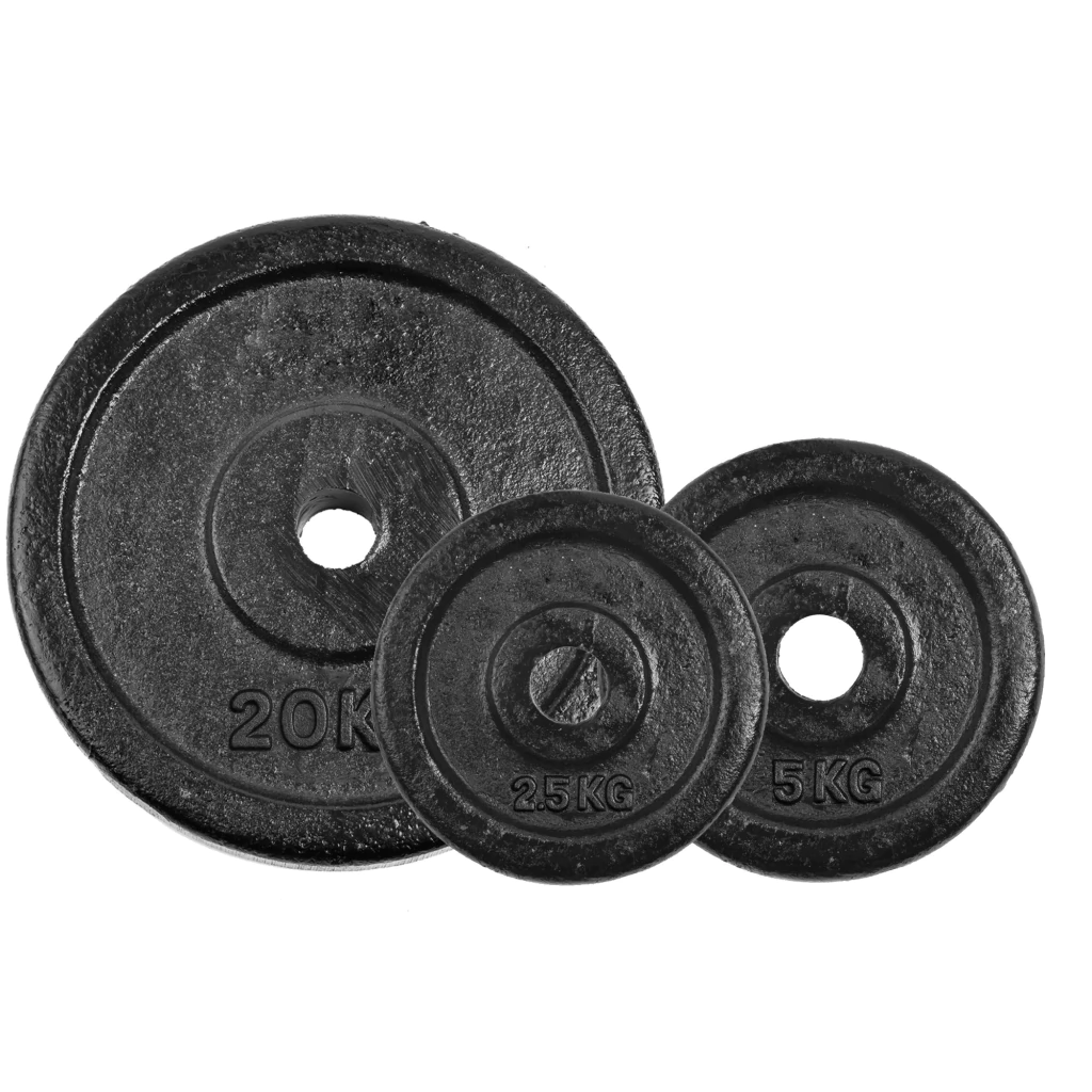 - Discos de fundición maciza con un peso de 5 kg cada uno.